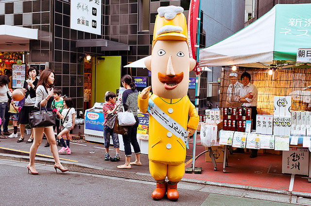 Yep. You read that correctly. A lot of towns in Japan have some sort of animated animal or character to represent their fine corner of the country. Often, they will feature on signs, in parades, on city buildings and the like. But beyond that, there is usually a fun little jingle unique to where you are that plays at train stations or even at crosswalks when the light turns green (or blue as they say it).